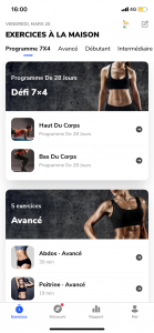 Cette application regroupe des exercices intensifs et très efficaces de 10 à 15 minutes par jour, et se font uniquement au poids du corps. Vous n’avez donc aucune excuse pour vous y mettre ! Pas d’équipement nécessaire, seulement de l’eau et une tenue de sport ! Les exercices sont adaptés à tous les niveaux et à toutes les corpulences. Il existe une version Premium mais la version gratuite vous propose déjà assez d’exercices pour vous occuper un bon moment ! Et si par malheur vous avez fait le tour de tous les exercices vous pouvez toujours télécharger les 4 autres applications !